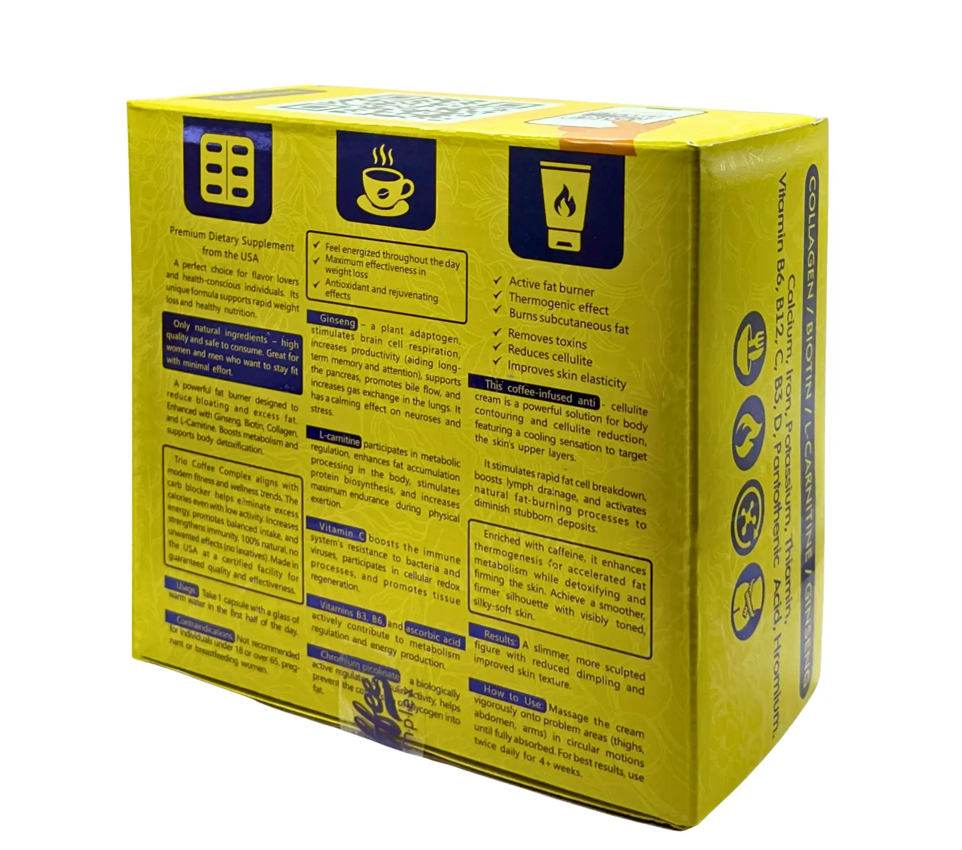 Хотите просыпаться с зарядом бодрости, легче контролировать аппетит и видеть, как тело становится более подтянутым? Trio Coffee Complex объединяет сразу 3 продукта в одном комплексе: капсулы для похудения + кофе для похудения + антицеллюлитный крем с кофеином — чтобы вы работали на результат изнутри и снаружи.
